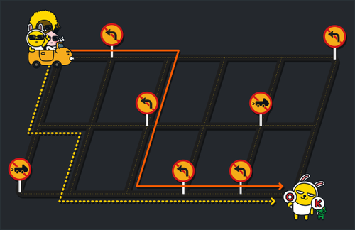 카카오내비 개발자인 제이지는 시내 중심가의 경로 탐색 알고리즘 개발 업무를 담당하고 있다. 최근 들어 보행자가 자유롭고 편리하게 걸을 수 있도록 보행자 중심의 교통 체계가 도입되면서 도심의 일부 구역은 자동차 통행이 금지되고, 일부 교차로에서는 보행자 안전을 위해 좌회전이나 우회전이 금지되기도 했다. 복잡해진 도로 환경으로 인해 기존의 경로 탐색 알고리즘을 보완해야 할 필요가 생겼다.