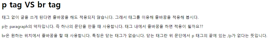 아래 사진을 통해 br 태그를 통해 줄바꿈을 할 수 있는 것을 확인할 수 있습니다.