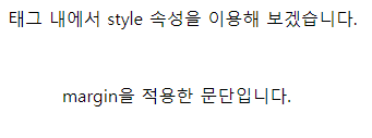 <p style="margin: 50px">margin을 적용한 문단입니다.</p>