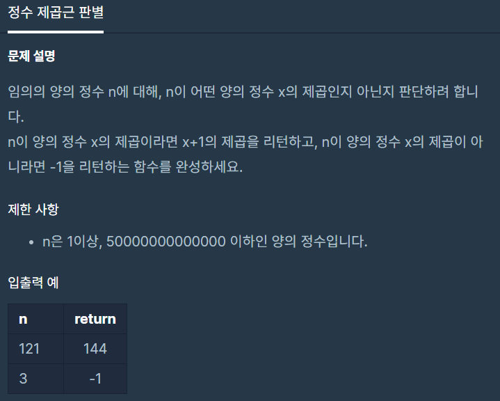 (프로그래머스 c++)정수 제곱근 판별 본문