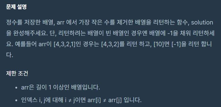 arr 배열에서 가장 작은 수를 찾아서 제거한 후 그대로 리턴해주면 된다..!