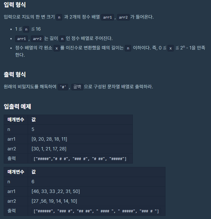 (프로그래머스 c++ KAKAO)[1차]비밀지도 본문