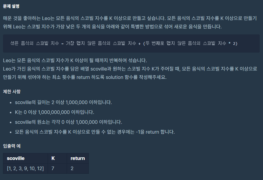 (프로그래머스 c++)더 맵게 본문
