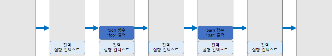 - 생성된 함수 실행 컨텍스트는 '실행 컨텍스트 스택(콜 스택)'에 푸시되고 함수 코드가 실행된다.