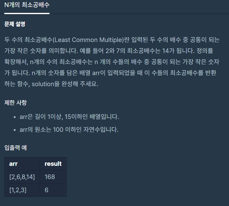 arr.size() - 1 만큼 반복하면 N개의 최소 공배수를 구할 수 있다..!