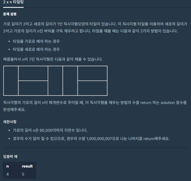 (프로그래머스 c++)2 x n 타일링 본문