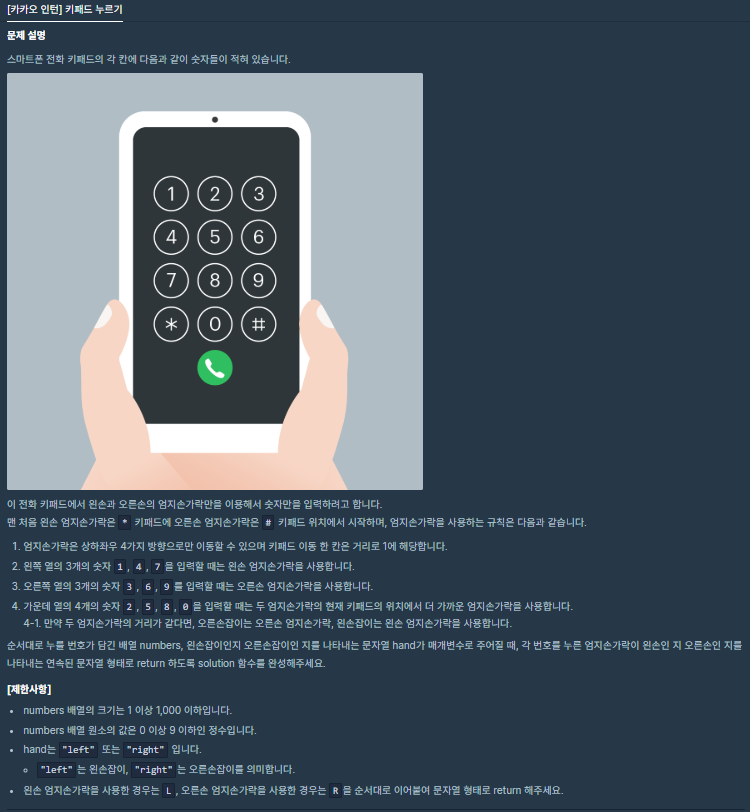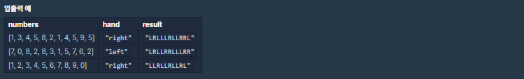 numbers[i]가 2, 5, 8, 0 이면 가까운 손으로 누르고, 거리가 같으면 주 손으로 누르면 된다.